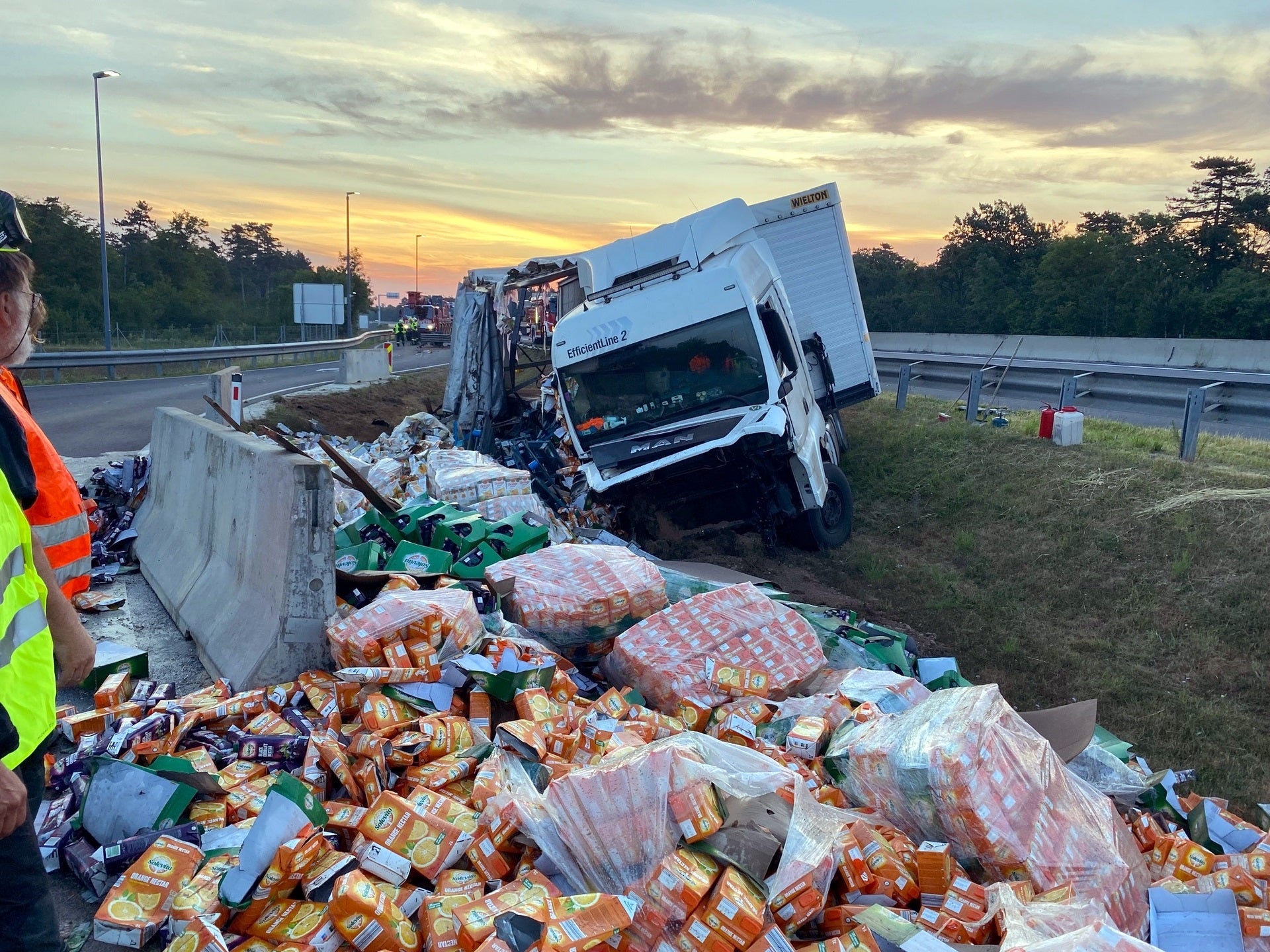 Bei einem Unfall auf der Richtungsfahrbahn Graz der Südautobahn (A2) bei Wiener Neustadt hat am Dienstag in den Morgenstunden ein Lkw seine gesamte Ladung verloren. Tausende Liter Fruchtsäfte versickerten im Erdreich, berichtete die Feuerwehr. Der Lenker wurde vom Roten Kreuz versorgt.