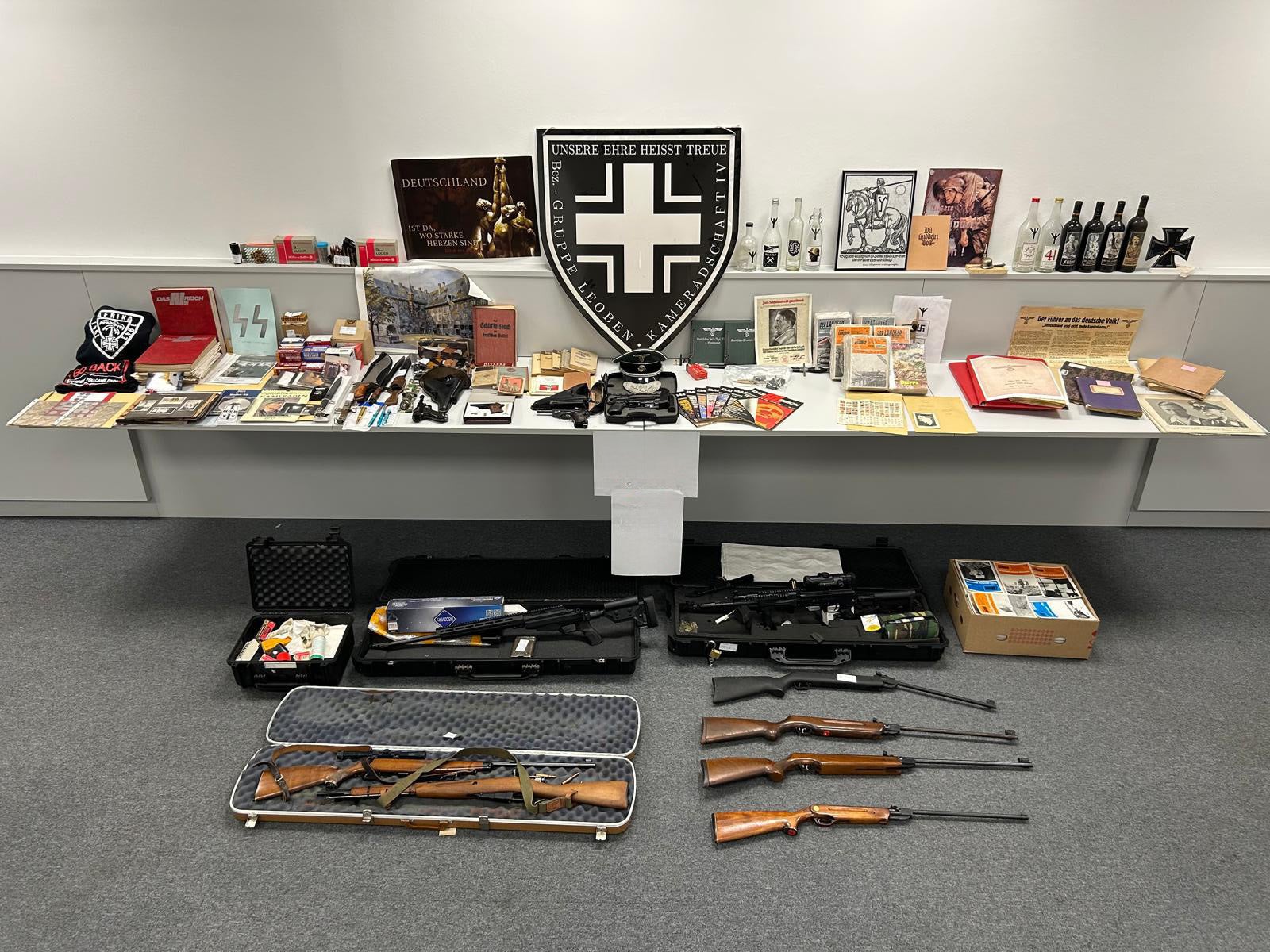 Stmk. Ein 44-jähriger Leobener ist nach einer mutmaßlichen nationalsozialistischen Wiederbetätigung bei einem Rockkonzert vom steirischen Landesamt für Staatsschutz und Extremismusbekämpfung (LSE) ausgeforscht worden. Bei einer Hausdurchsuchung wurden NS-Devotionalien, Schusswaffen, verbotene Waffen und Munition sowie Drogen sichergestellt. Bei der Vernehmung war der Verdächtige teilweise geständig, hieß es am Dienstag in einer Aussendung der Landespolizeidirektion Steiermark.