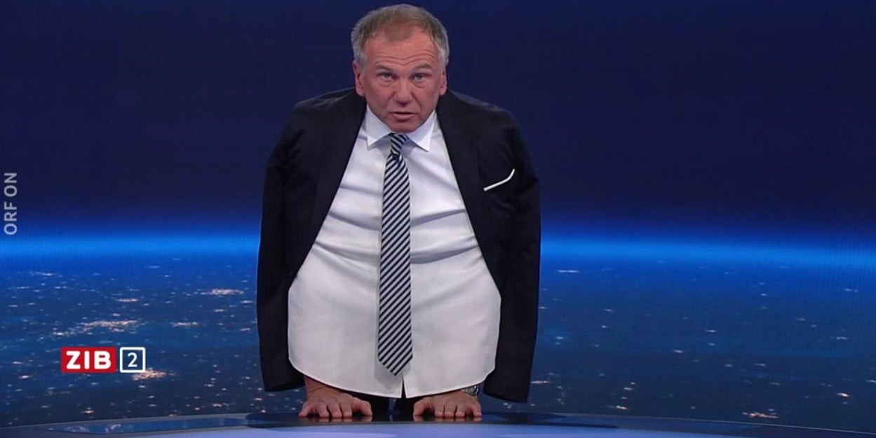 Das Bild schaltet nach den Videobeiträgen wieder ins Studio und zu sehen ist Armin Wolf bei der "Vogel"-Einlage am Studiotisch. Er sagt dazu: "Wenn das richtig gemacht wird, dann sieht es in etwa so aus."