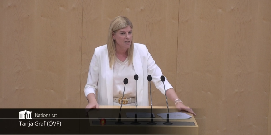Für Aufsehen sorgte angesichts der Teuerungs-Debatte das Outfit der ÖVP-Abgeordneten Tanja Graf. Die Lehrlingsbeauftragte und ÖVP-Energiesprecherin trug einen Gucci-Gürtel. Sie sprach in ihrer Rede über das Thema des erleichterten Zugangs zur Rot-Weiß-Rot-Card - dabei war das teure Mode-Accessoire deutlich zu sehen.