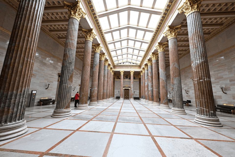 Und hier wird er stehen. Von der Säulenhalle betritt man den Empfangssalon, der traditionell das Reich des Nationalratspräsidenten ist. Zwischen den Säulen soll der Bösendorfer dann stehen.