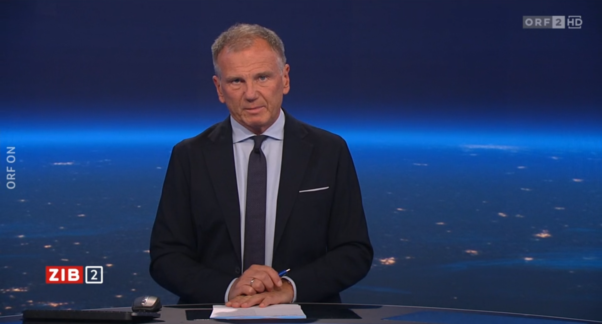 Der ORF-Anchor steigt auch sofort auf den Schmäh ein - er habe das (seiner Frau) Euke Frank schon selbst schreiben wollen. Dann aber macht Wolf einen Witz, der durchaus auf Kosten seines ZiB2-Kollegen Martin Thür geht. Seiner Frau Euke Frank antwortet Wolf: "Der