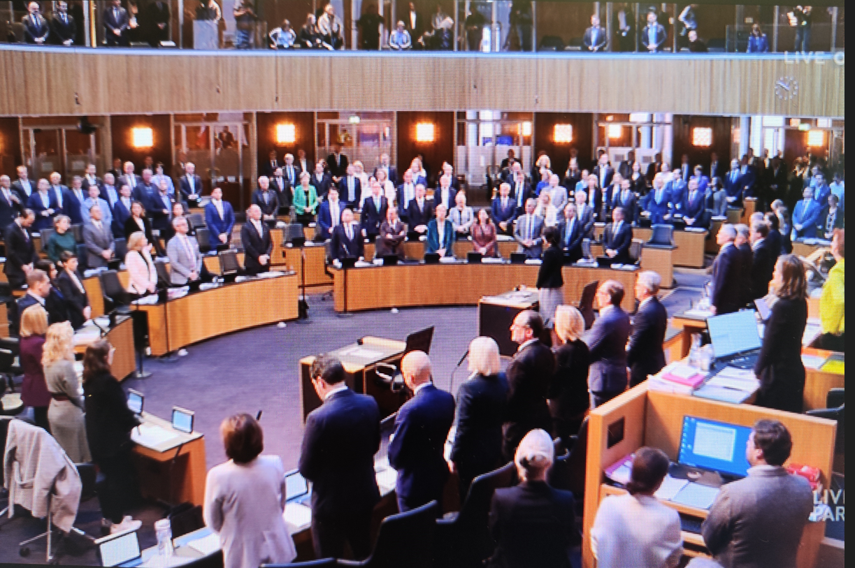 Dort gedachten die Abgeordneten den Opfern in Israel und Gaza.