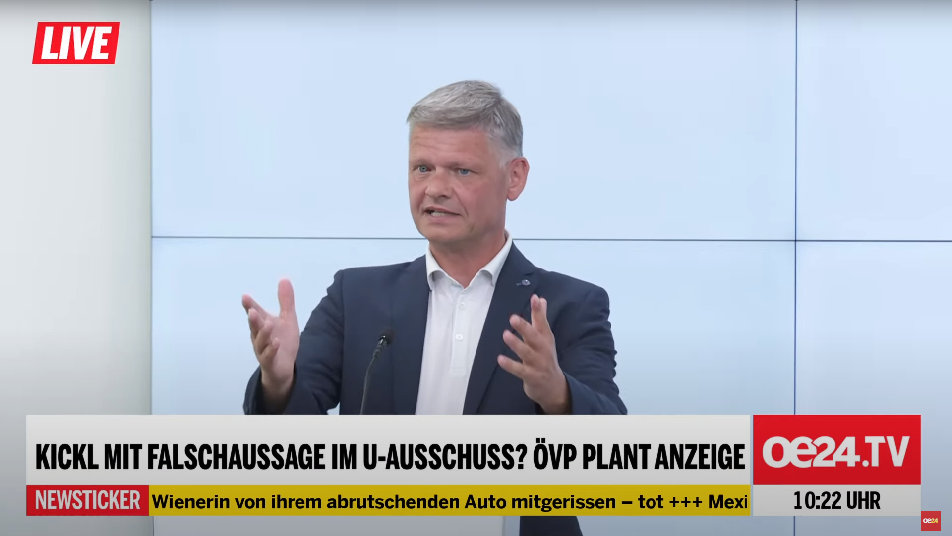 Wie von oe24 bereits gestern berichtet, erstattet die ÖVP Anzeige gegen FPÖ-Chef Herbert Kickl. "Es geht nicht nur um eine Aussage, sondern es geht um mehrfache Falschaussagen", so Hanger. Und: "Im Untersuchungsausschuss gilt Wahrheitspflicht". Man müsse "nicht nur wahrheitsgetreu, sondern auch vollständig" aussagen. Nun sei die Justiz "am Zug", die darüber entscheide, "ob tatsächlich eine Falschaussage vorliegt oder nicht."