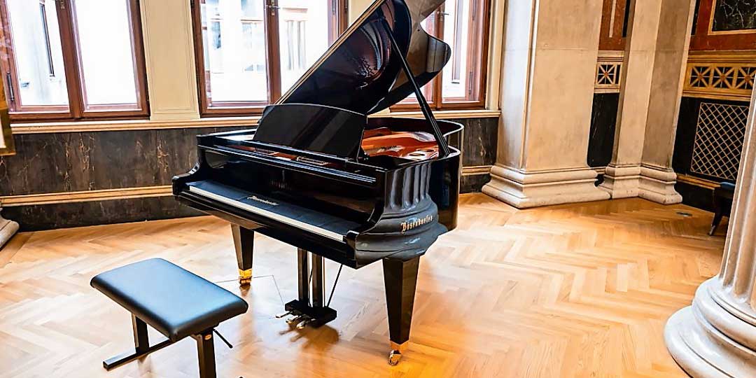 Kurzes Schwarzes. Stattdessen steht dort nun ein kürzerer, in schlichtem Schwarz gehaltener Flügel von Bösendorfer – er soll mit rund 87.000 Euro über 100.000 Euro billiger als der vergoldete Flügel sein.