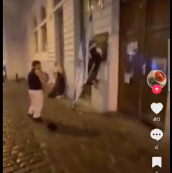 Gestern Nacht gab es einen antisemitischen Angriff auf den Wiener Stadttempel. Unter Gejohle reißt eine Person die israelische Flagge die die Synagoge gehisst hatte hinunter, eine andere Person imitiert ein Maschinengewehr.