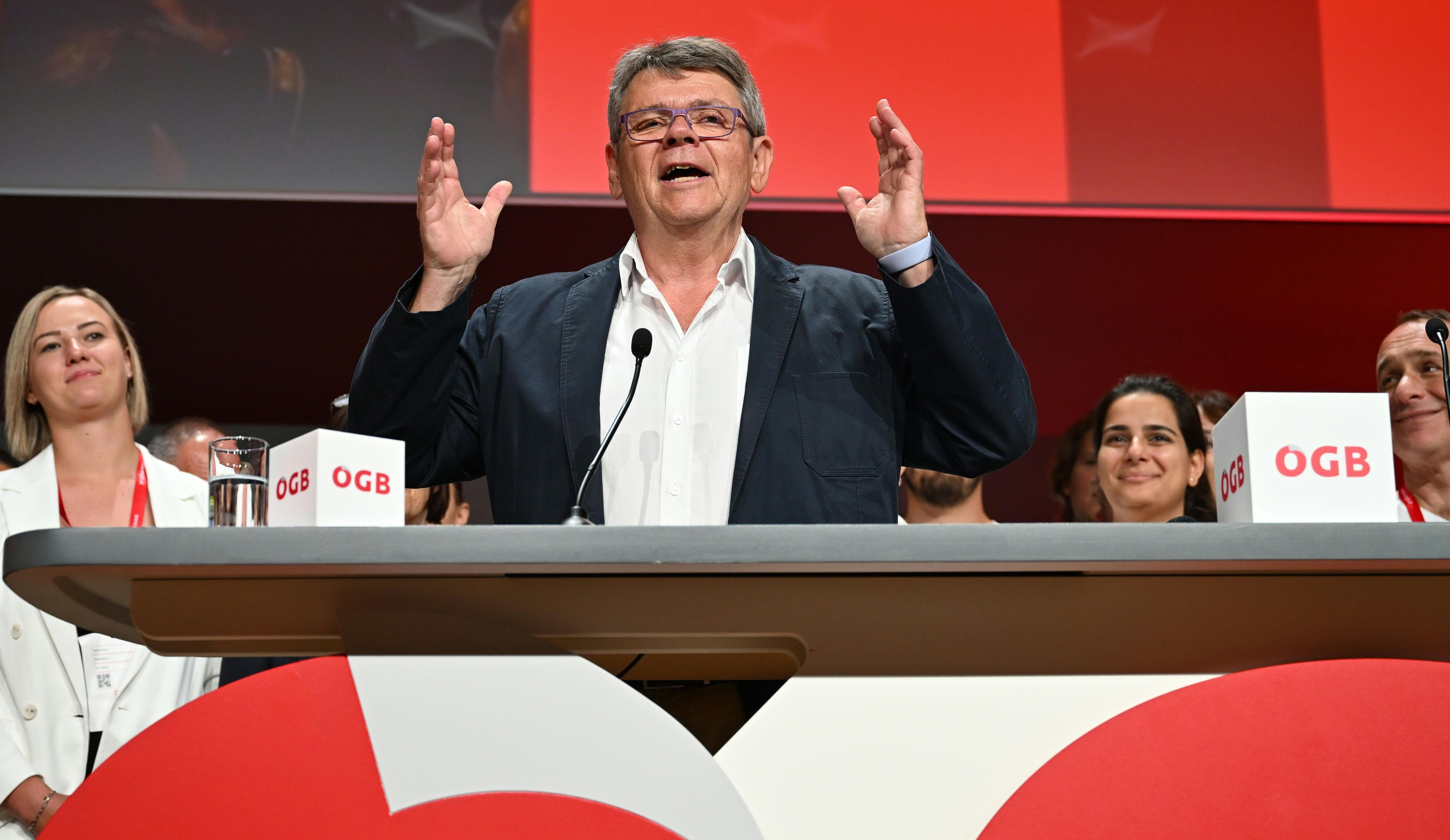 Wien. Am Ende waren es 90,4 % – mit klarer Mehrheit wurde Wolfgang Katzian (SPÖ) am ÖGB-Bundeskongress als oberster Gewerkschafter wiedergewählt. Und Katzian enttäuschte seine Fans nicht.