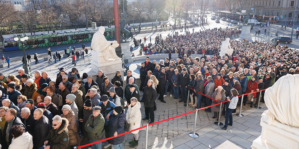 Wie erste Bilder zeigen, ist der Ansturm groß: Hunderte Österreicher stehen schon am Vormittag Schlange, um ins Parlament zu kommen – und nehmen stundenlange Wartezeiten in Kauf.
