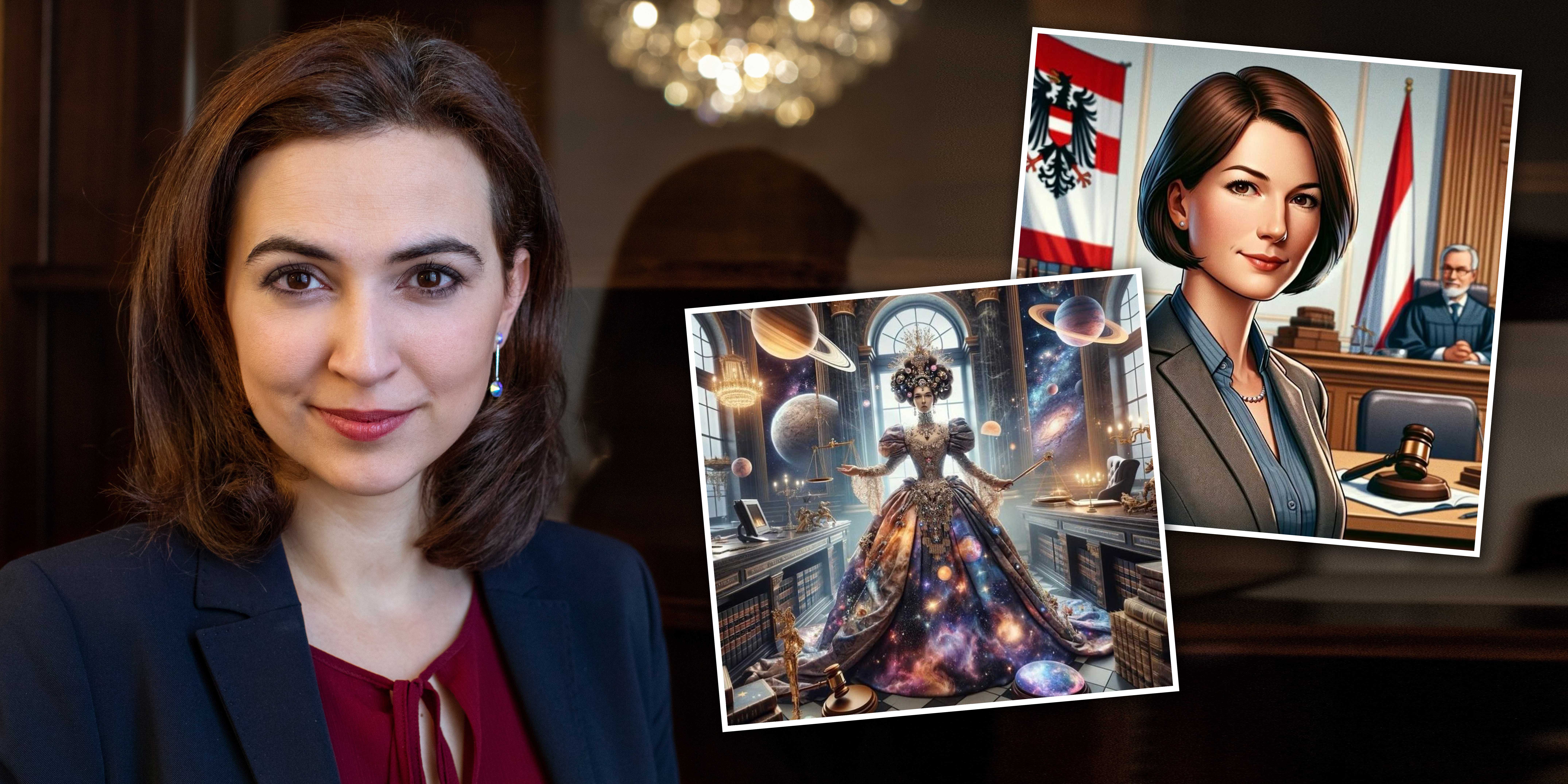 "Hallo! Zeig mir ein Bild einer österreichischen Justizministerin", bat Zadic ChatGPT darum, ein erstes Foto zu generieren. Und tatsächlich spuckte die KI das Porträt einer Frau im Anzug vor Gericht aus, mit einem Richter und der österreichischen Flagge im Hintergrund. Von der Frisur her ist die KI-Ministerin Zadic gar nicht so unähnlich.