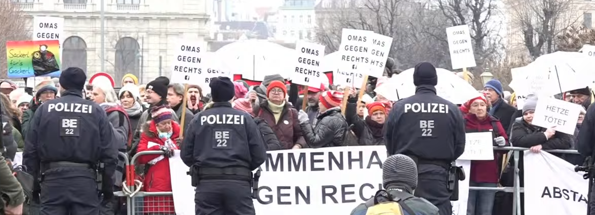 Die Kundgebung wurde von einem größeren Aufgebot der Polizei beobachtet. Die Hofburg und das Bundeskanzleramt waren mit Sperrgittern gesichert. Es kam zu keinerlei Zwischenfällen, die Stimmung blieb friedlich. Kurz vor 13.00 Uhr zogen dann die letzten Demonstrantinnen und Demonstranten ab, die zuvor Transparente "Nie wieder Volkskanzler" oder "Wir kicken Kickl raus" in die Höhe gehalten hatten.