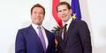 Großer Bahnhof für Arnie (70) am Montagabend im Kanzleramt: Anlässlich des R20-Klimagipfels hatte Kanzler Sebastian Kurz den „Terminator“ mit seiner Partnerin Heather Milligan zum Dinner ins Kanzleramt geladen. 90 Promis, neben Kurz u. a. Umweltministerin Elisabeth Köstinger und Niederösterreichs Johanna Mikl-Leitner, speisten mit Arnie dessen Lieblings-Menü: Grießnockerlsuppe, Wiener Schnitzel und Kaiserschmarren. Oder besser: Sie wollten es mit ihm genießen. Doch der nach seiner dramatischen Herz-OP rekonvaleszente Arnie fuhr schon nach 50 Minuten – nach der Suppe und vor dem Schnitzel – wieder ins Hotel zurück.