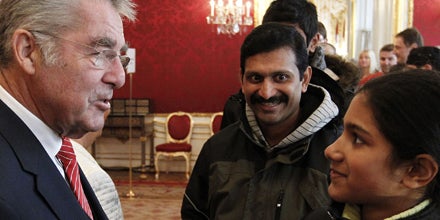 Die Besucher kamen aus der ganzen Welt, die Top-Entfernung war am frühen Nachmittag Sri Lanka. Für Heinz Fischer macht es scheinbar keinen Unterschied. Der Bundespräsident weiß immer etwas zu sagen, und sei es auch nur etwas über eine Halskette oder ein Kleidungsstück. "Eine Nofretete, sehr schön." "Gehen sie bergsteigen?" "Was machst du gerne?" "Was studieren Sie?" "Ist das ihr Sohn?" "Ist das die Mama?" Gerne würde er mit jedem Besucher noch länger plaudern, sagt er den Journalisten, aber man kann die anderen nicht so lange warten lassen, und so geht es im Eiltempo weiter.