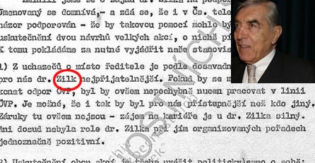 Gleich das erste der tschechischen Dokumente beweist Zilks Arbeit bei DS (Detektivna Sluzba/ Detektiv Dienst) als Spion. Wohl glaubten die Tschechen, dass ihnen die Politiker in Österreich gefährlich werden könnten. Zilk nahmen sie deswegen so herzlich auf, weil er marxistischer Überzeugung war und zu österreichischen Politikern einen guten Draht hatte.