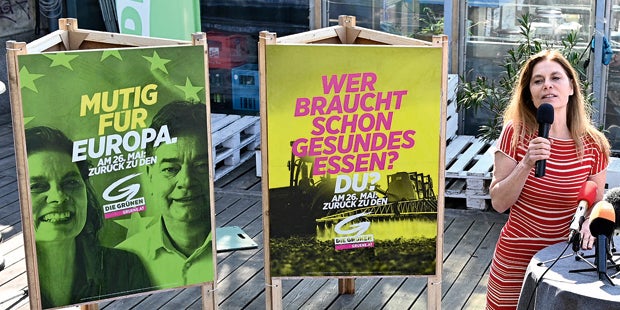 „Gesundes Essen“ – die Grünen-Werbelinie ist ganz auf Starköchin Sarah Wiener ausgerichtet. Doch jetzt gräbt die Polit-Konkurrenz – die Neos – ein Plakat von 2009 aus, auf dem Wiener Werbung für Bio-Leberkäse in OMV-Tankstellenshops machte.