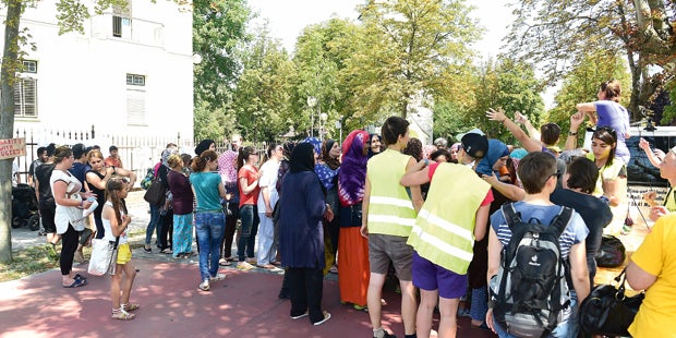 Mehr als 30 Frauen treffen sich gerade zu einer Solidaritätsaktion für weibliche Flüchtlinge und verteilen Hilfsgüter. Die Männer, die sich sofort sammeln, werden weggedrängt. Gut zwei Dutzend Polizisten sichern die Lage, es bleibt ruhig. Irritierend: Nur vereinzelt verlassen Busse mit Flüchtlingen das Asylzentrum, die Übernahme durch die Länder dürfte weiterhin schleppend sein. Wöchentlich stellen 1.600 neue Flüchtlinge Asyl, dem stehen 1.100 neue Überbrückungsquartiere durch den Bund gegenüber (siehe rechts).