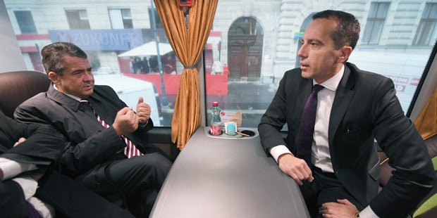 Wobei nicht eindeutig zu klären war, ob der ehemalige SPD-Vorsitzende Gabriel, der nach den Wahlverlusten der deutschen Sozialdemokraten und deren Oppositionsansage der nächsten Regierung vermutlich nicht mehr angehören wird, gekommen war, um dem SPÖ-Vorsitzenden Kern Trost und Rat zu spenden.