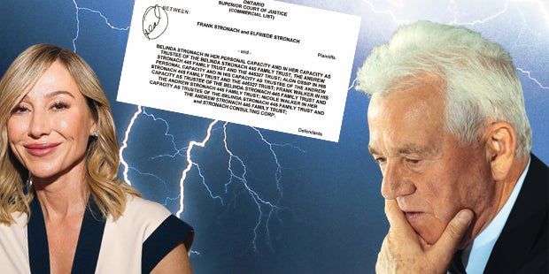 Ontario. „The Stronach Group“ umfasst 253 Gesellschaften und Stiftungen (Pferderennbahnen, Golfclubs, Ebreichsdorf etc.). In der Klage fordert Frank: „Belinda muss sich als Treuhänderin, Direktorin, Präsidentin, Personalchefin und CEO aus allen Unternehmen der Stronach Group zurückziehen.“ (Siehe rechts.) Das fordern Frank Stronach und seine Ehefrau Elfriede auch von Alon Ossip, langjähriger Berater und Treuhänder der Stronach Group, sowie von den Enkelkindern „Nicole“ und „Frankie“. Allen wirft Stronach „Misswirtschaft“ vor. Eingebracht wurde die Klage am 1. Oktober von Franks Anwälten in Ontario.