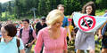 Doch diesmal kamen – neben einer gut gelaunten Menschenmenge, die ihm zum Gipfel folgte – auch Bilder dabei heraus, die Kurz wohl nicht ganz so recht sein dürften: Neben ihm und NÖ-Landeshauptfrau Johanna Mikl-Leitner wanderten drei junge Damen, die plötzlich ihre Dirndln lüfteten – mit Botschaft. Auf der Rückseite ihrer Dirndlschürzen prangte ein durchgestrichener Zwölfer. Es ist eine Protestaktion der NGO Attac gegen den 12-Stunden-Tag.