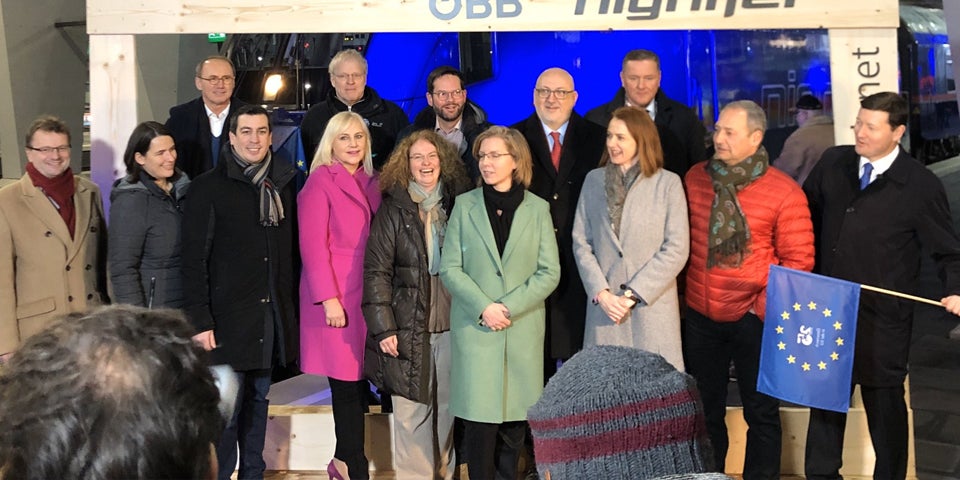 Es war der Start für den ersten ÖBB-Nightjet nach Brüssel. Schieder, Karas & Co. bewegten sich auf Schiene und ganz klimafreundlich in Richtung EU-Parlament.