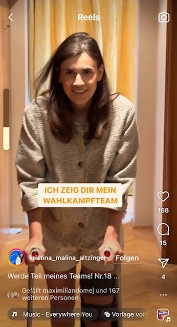 EU-Kandidatin kämpft via Insta und auf Krücken um Vorzugsstimmen