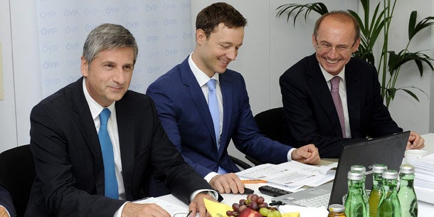 Michael Spindelegger, Gernot Blümel, Othmar Karas bei der Sitzung in Wien; Foto: APA