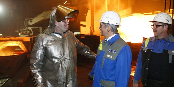 Der Rundgang begann mit dem Schichtwechsel um 22 Uhr beim Hochofen A.