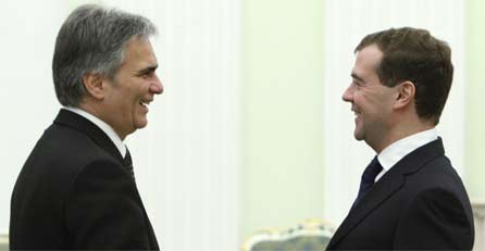 Mit dem russischen Präsident Medwedew sprach Österreichs Kanzler über die Gaslieferungen.