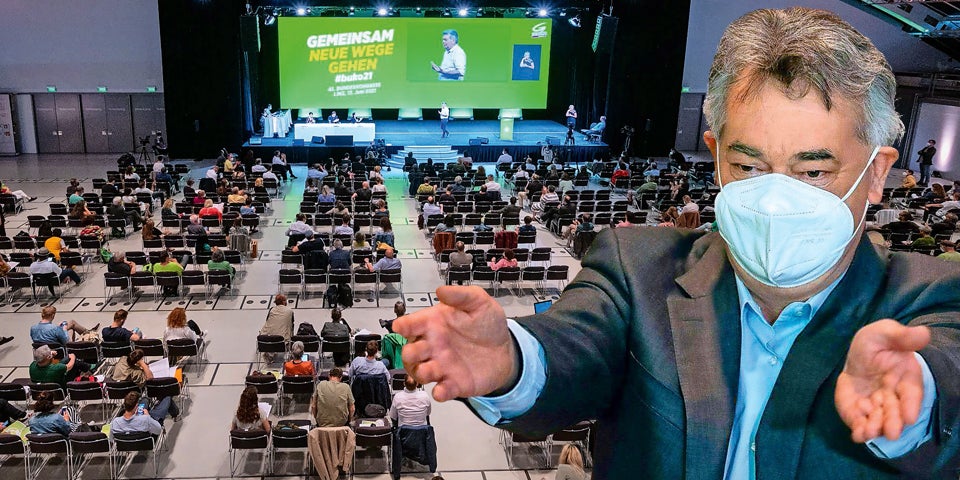 Zunächst versuchten die Grünen, das mit Covid-Sicherheitsmaßnahmen zu erklären. Um dann nach Wirbel auf Twitter, aber auch unter einigen Delegierten doch einzulenken.