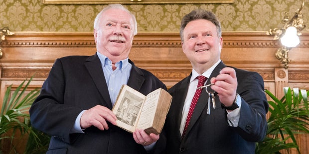 Der neue Stadtchef bedankte sich mit einem antiquarischen Kochbuch.