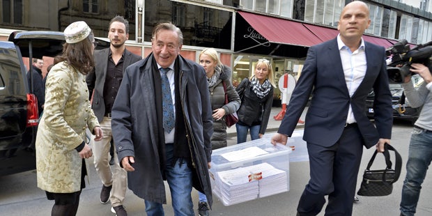 Am Abend, um 21.00 Uhr, werden Mitarbeiter Lugners die noch ausständigen Unterstützungserklärungen ins Innenministerium bringen. Lugner hatte am Freitag einen Wahlvorschlag eingereicht (und die 3.600 Euro Kostenbeitrag bezahlt), aber erst rund 5.000 Unterschriften abgegeben. Somit musste ihm die Bundeswahlbehörde - wie auch dem EU-Austrittsparteiobmann Robert Marschall - die im Gesetz vorgesehene Nachfrist setzen. Sie läuft bis heute, Dienstag, 24.00 Uhr. Am Mittwoch prüft die Bundeswahlbehörde noch einmal, spätestens am Donnerstag werden dann die Wahlvorschläge kundgemacht.