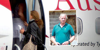 18 Uhr, bringt sie der Bus zur AUA-Maschine. Vor dem Flieger eine rührende