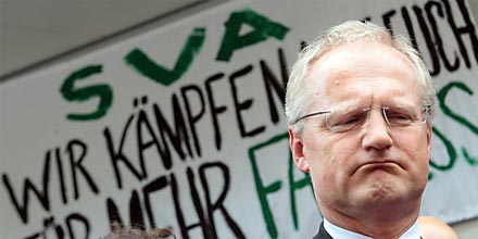 vorbereitet, sie hatte ihr Gebäude mit Transparenten mit Aufschriften wie "SVA