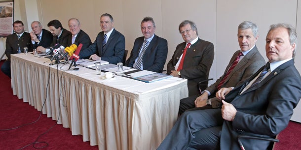 10:45 Uhr: Neben Erhard Veiter, Bürgermeister von Feld am See, gehören der Initiative unter anderm die Bürgermeister Gerhard Oleschko (Keutschach am See), Franz Arnold (Pörtschach), Dietmar Rauter (St. Urban), Siegfried Unterweger (Albeck) und Johann Huber (Ossiach) an