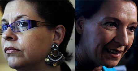 Die rote Frauenministerin und die schwarze Familienstaatssekretärin richten einander Unfreundlichkeiten aus.