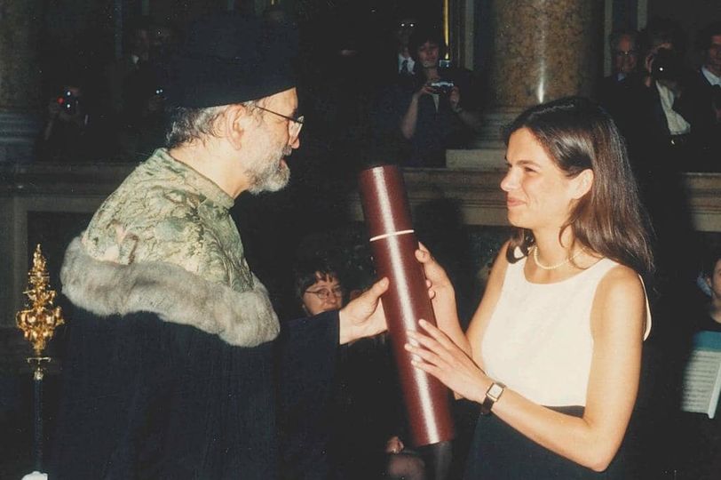 Erkennen Sie diese Frau? Zugegeben es ist ein etwas älteres Foto, das die Fünfzigjährige heute Vormittag auf ihrem Facebook-Account veröffentlichte. Es zeigt die damalige Studentin bei dem wohl schönsten Tag eines jeden Studiums - der Promotion.