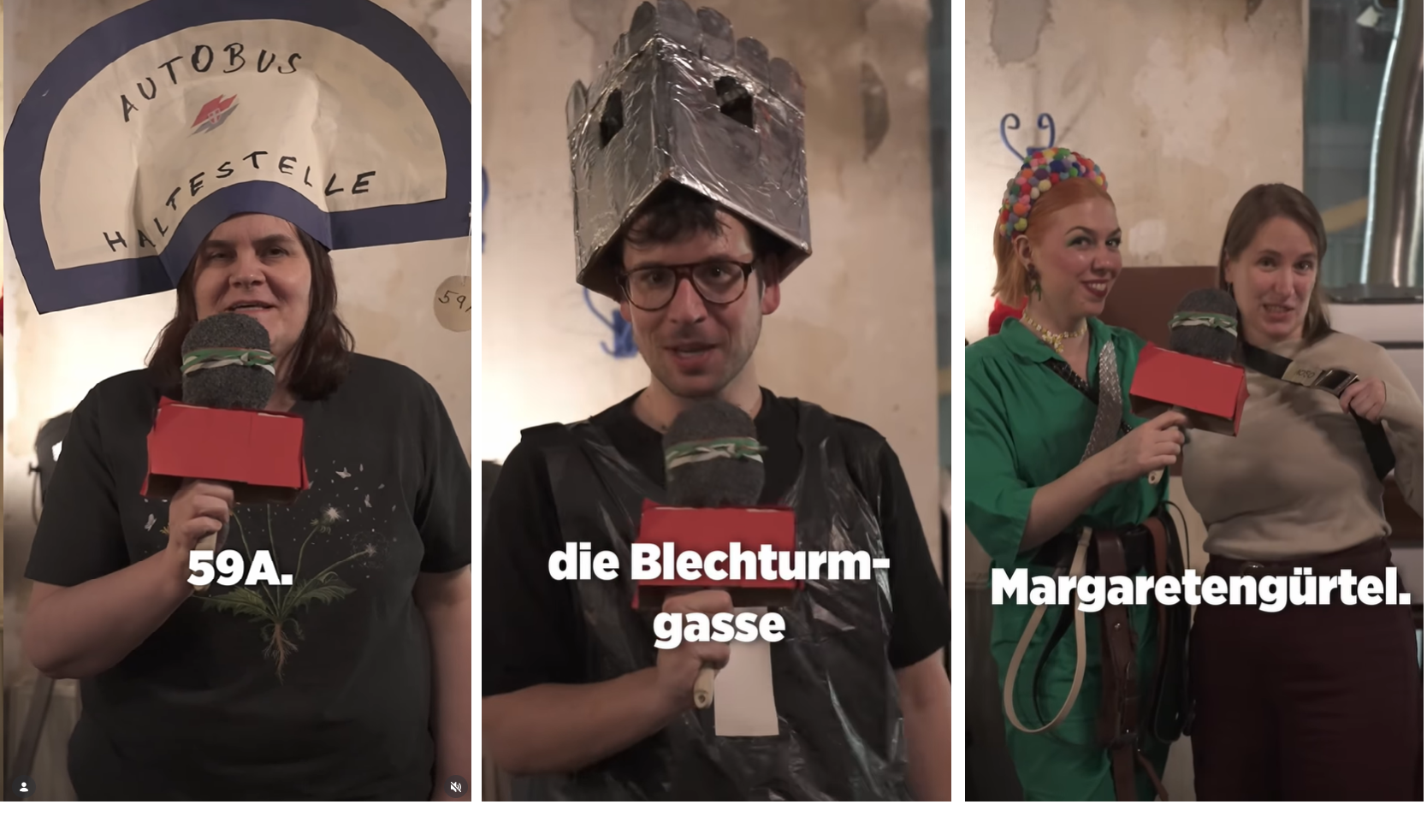 Die User trauten ihren Augen kaum: Da steht ein Aktivist als Bushaltestelle für den 59A, eine andere Teilnehmerin hat sich als Blechturmgasse drapiert, und sogar der staubelastete Margaretengürtel bekam ein eigenes menschliches Denkmal.