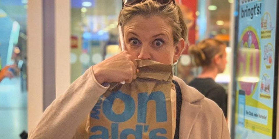 'Werner Kogler, du auch hier?', schreibt NEOS-Chefin Beate Meinl-Reisinger in einem Facebook-Posting, das die Politikerin mit McDonalds-Tüte zeigt.