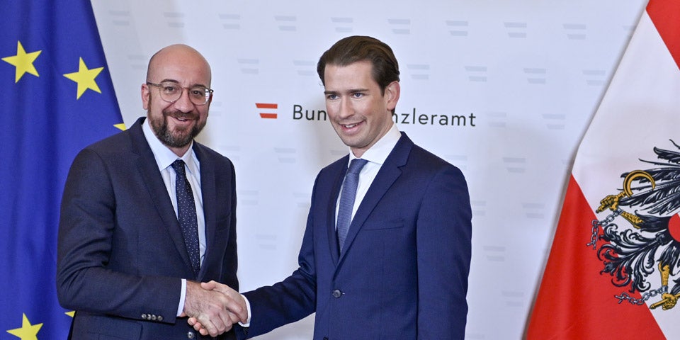 Kurz und Michel betonten die gute Zusammenarbeit, die beide als Regierungschefs Österreichs und Belgiens hatten. Der Kanzler gratulierte seinem Gast zur neuen Funktion und dankte dem EU-Ratschef insbesondere dafür, dass er "der EU mehr Gewicht in der Welt verleihen will". Österreich sei ein kleines Land, wolle aber in der EU aktiv mitgestalten.