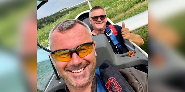 FPÖ-Verkehrsminister Norbert Hofer hebt mit Segelflieger in Pinkafeld ab .