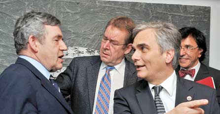 Jener Werner Faymann, der 2008 durch einen EU-Leserbrief für Verwunderung gesorgt hatte – plötzlich ist er in ebendieser EU eine große Nummer. In der österreichischen Botschaft in Brüssel fand die entscheidende Sitzung statt, wurde Faymanns Favoritin, Catherine Ashton, zur Außenministerin designiert. Beim EU-Abendessen danach saß Faymann zwischen Deutschlands Angela Merkel und Brown, aß Polenta mit Champignons. Plötzlich haben wir einen EU-Kanzler.