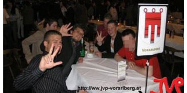 Hätten die drei jungen Männer gewusst, was sie mit ihrem "Spaß“ auslösen, sie hätten es sich wohl noch einmal überlegt: Mit einem dicken Grinser im Gesicht posierten die Vorarlberger JVP-Funktionäre bei einem Parteitag in Salzburg im vergangenen April mit drei ausgestreckten Fingern der rechten Hand – dem rechtsextremen Kühnengruß. Als Vorbild könnte FPÖ-Chef Heinz-Christian Strache gedient haben: Er geriet wegen eines Fotos mit diesem Gruß, das in jungen Jahren aufgenommen wurde, unter heftigen Beschuss.