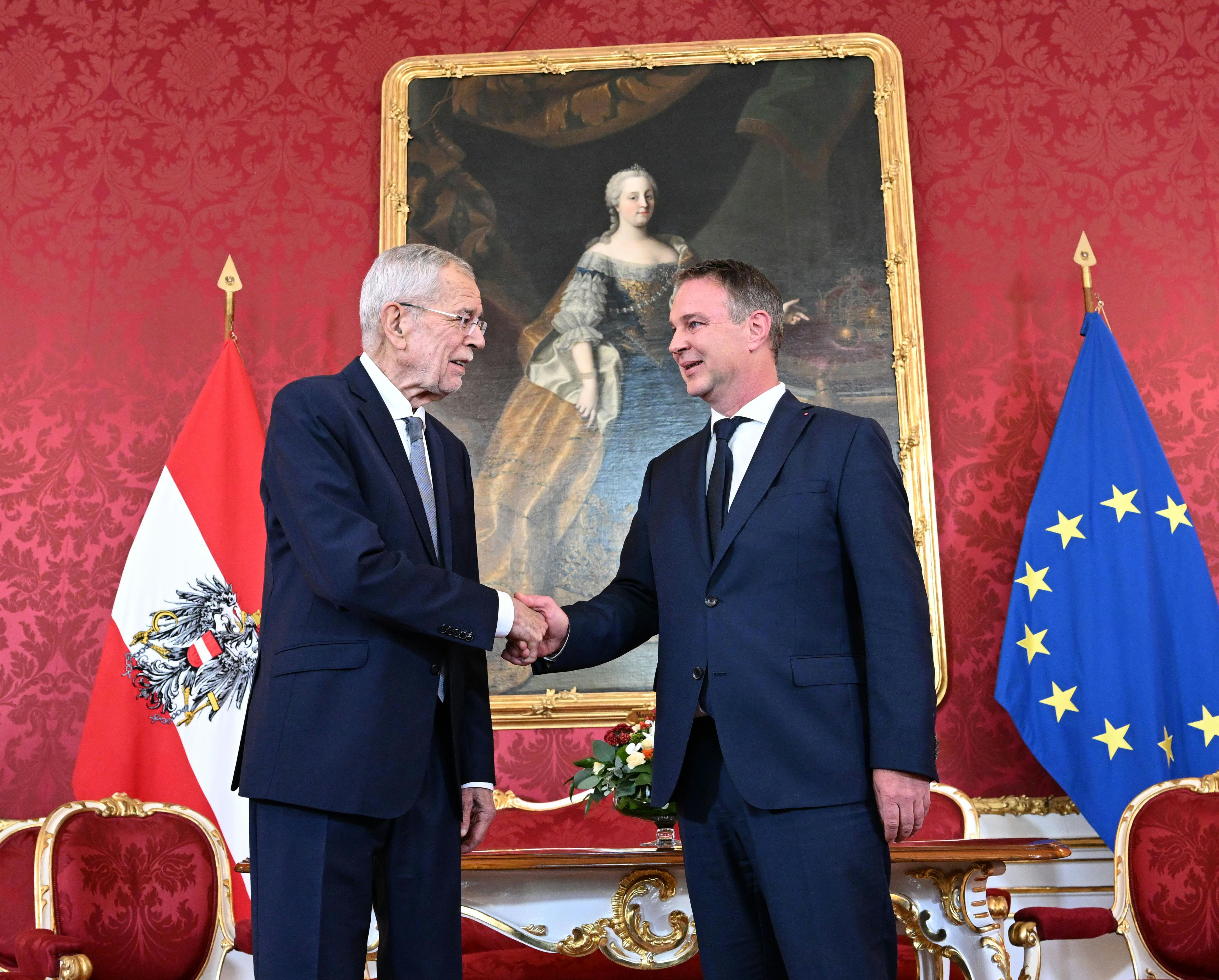Nach den Treffen mit Herbert Kickl und Karl Nehammer ging es für Alexander Van der Bellen mit Andreas Babler in die dritte Runde der Gespräche mit den Vorsitzenden der Parlamentsparteien.