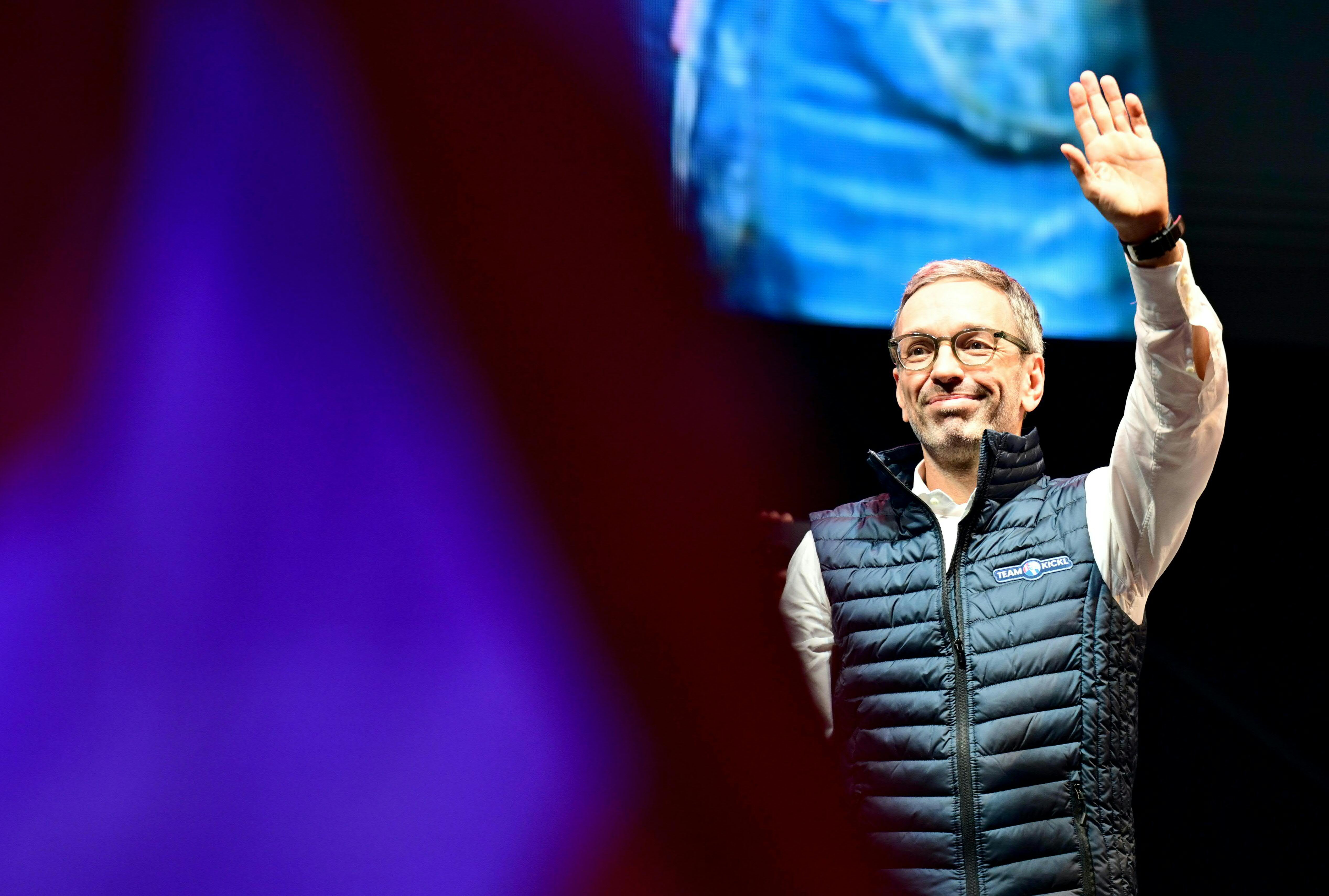 Nach dem traditionellen Auftritt der John-Otti-Band sowie Reden vom Wiener Landesparteichef Dominik Nepp, dem blauen Wiener Spitzenkandidaten Harald Stefan und FPÖ-Generalsekretär Michael Schnedlitz trat der Chef der Freiheitlichen unter tosendem Applaus am Freitagabend auf die Bühne vor dem Stephansdom.
