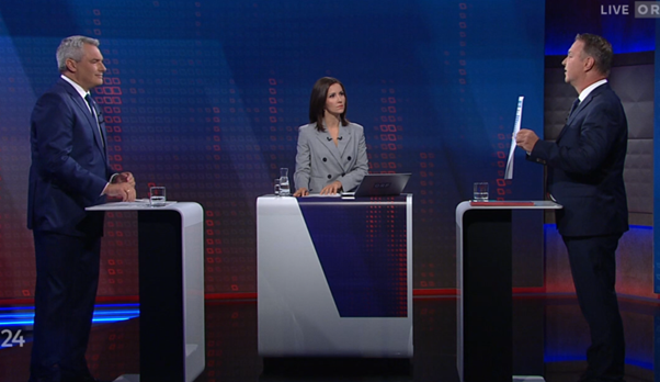 Immer wieder wurde Babler von Nehammer unterbrochen, beide wurden untergriffig.