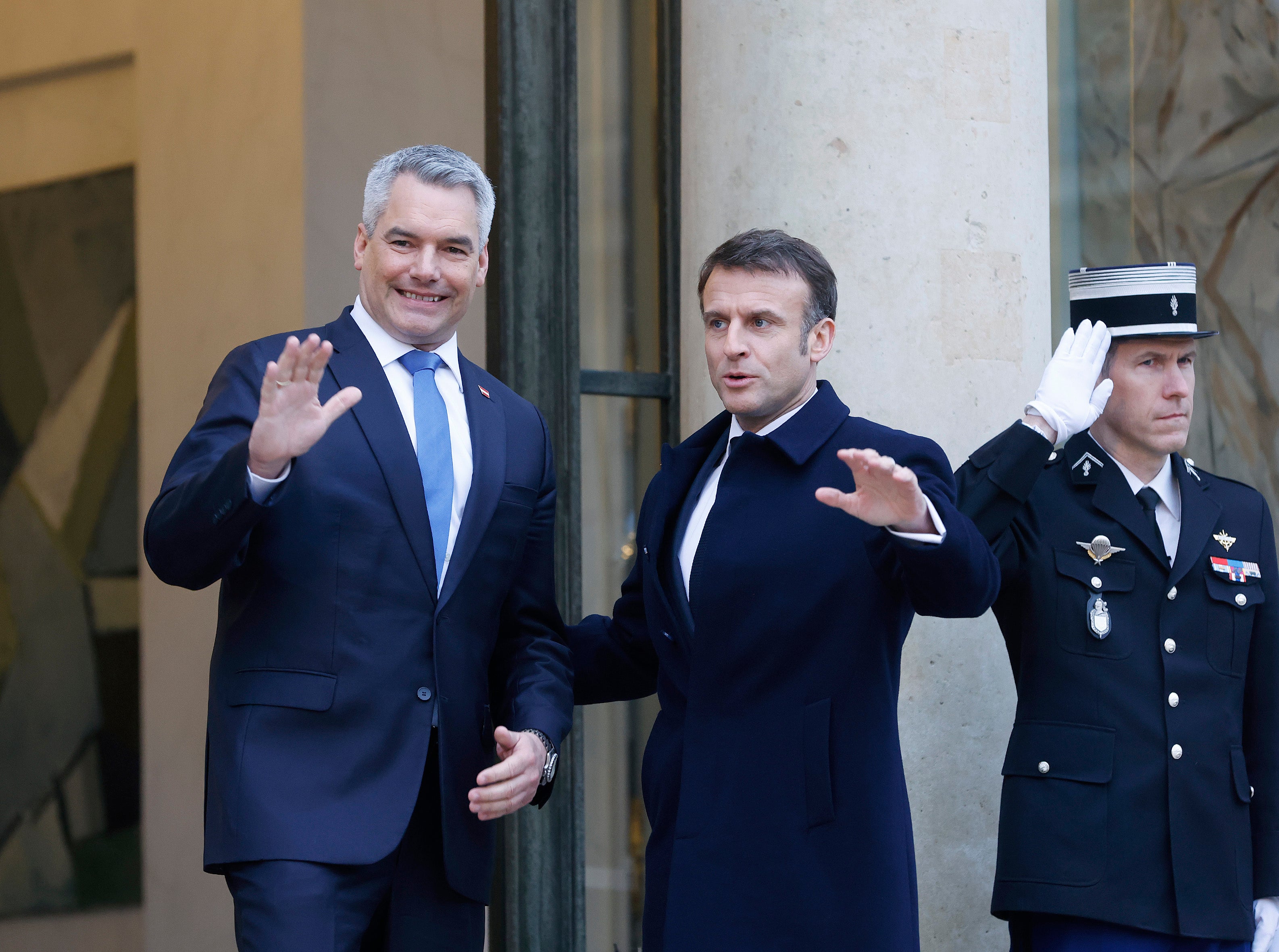 Bundeskanzler Karl Nehammer traf Frankreichs Emmanuel Macron, Deutschlands Olaf Scholz und mehere weitere Regierungschefs zum Ukraine-Gipfel. Macron warnte vor Putins Angriff auf Europa: "Putin darf nicht gewinnen."