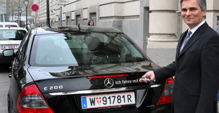 Staatssekretär Josef Ostermayer fährt U-Bahn, Kanzler Werner Faymann mit einem CO2-armen Erdgas-Mercedes. Jetzt sollen auch andere Minister umweltfreundliche Dienstkarossen bekommen: Wie Florian Unterberger von der BBG bestätigte, wird Mitte Februar ein neuer Rahmenvertrag für die Dienstautos geschlossen. An der Ausschreibung beteiligt haben sich die Top-Marken VW, Mercedes, Audi und BMW. Laut Unterberger winken „sensationelle Konditionen“. Bisher kostete ein Dienstauto rund 54.000 Euro. Als Nächstes neue Wagen bekommen Claudia Bandion-Ortner und Alois Stöger, deren Autos über 280.000 Kilometer am Tacho haben.