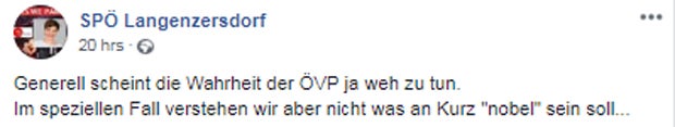 Sein Posting sorgte für reichlich Wirbel. Später nahm er diesen Ausdruck zurück und postete eine Entschuldigung. Es sei "aus einer Emotion" heraus entstanden. Die Empörung teilten nicht alle. Die roten Rebellen der SPÖ Langenzersdorf legten sogar noch einen drauf. In Anspielung auf Köberls "Nobelhuren"-Posting schrieb die Bezirkspartei auf Facebook ganz süffisant: "Im speziellen Fall verstehen wir aber nicht was an Kurz 'nobel' sein soll ..."