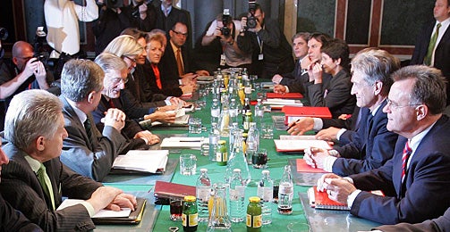 Bestenfalls die Eurofighter-Frage, die Steuerreform und die Studiengebühren taugen jetzt noch für ein Sprengen der Verhandlungen, will man das Projekt nicht an Kleinigkeiten oder der Ressortaufteilung scheitern lassen. Ansonsten blieben nach dem ersten Durchgang der Gespräche an ein wenig größeren Themen vorerst nur das Wahlrechtspaket und der Modus zur Flexibilisierung des Kindergelds offen.