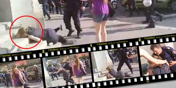 VIDEO: Polizei stößt Frau bei Asyl-Demo nieder