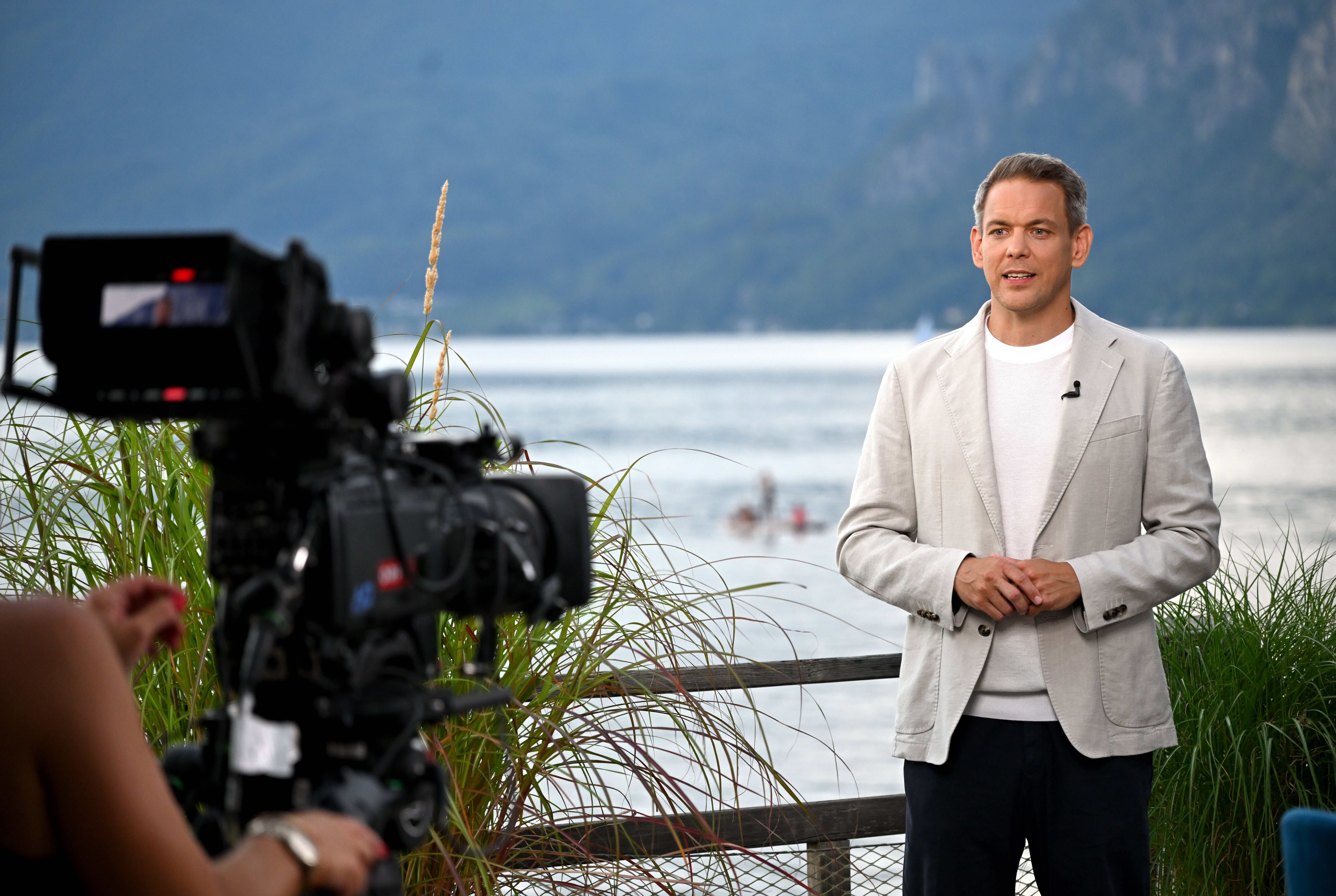 Die Sommergespräche des ORF werden heuer von "ZiB2"-Anchor Martin Thür geführt. Ein Werbe-Sujet des Senders zeigt den Moderator mit auffällig braunen Haaren.